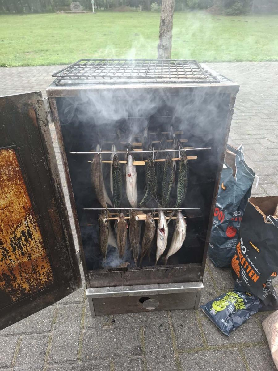 Eenmaal terug in de haven legden we de vis achterin en reden we terug naar Oranjeborg. Onderweg hebben we nog een hamburger gegeten. Om 19.30 uur waren we terug op locatie. We hebben de vis nog eens uitgespoeld om deze de dag daarna meteen te roken. René en Kevin leek het een leuk idee om met meerdere mensen van andere locaties dit nog eens te gaan doen. Hier wordt nog over gedacht en gesproken.