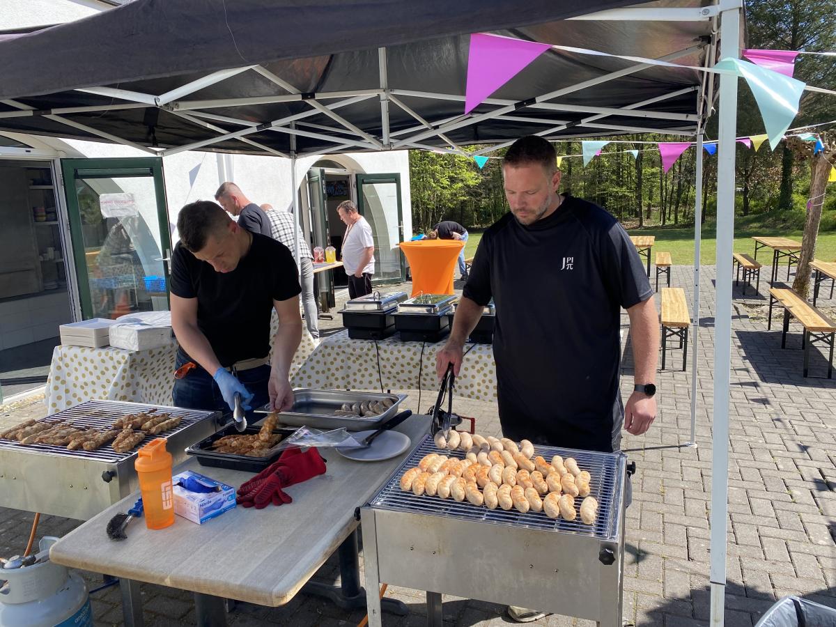 Voor een gezellige barbecue hadden ze in Loenen geen beter moment kunnen uitkiezen. De zon staat hoog aan de hemel, wanneer het eerste bedrijfsbusje van het installatiebedrijf om half drie het terrein oprijdt. Medewerkers van Oranjeborg hebben dan al alles in gereedheid gebracht voor de barbecue, waarbij het vlees is geleverd door slager Van der Horst uit Eerbeek, ook een vaste leverancier van de zorginstelling.